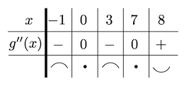 - 求二阶导,检验凹凸性,标记拐点及其函数值。