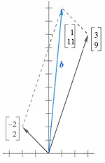 解方程组的问题变为确定左侧向量的线性组合,使之生成右侧向量 。此处 ,,其列图如下